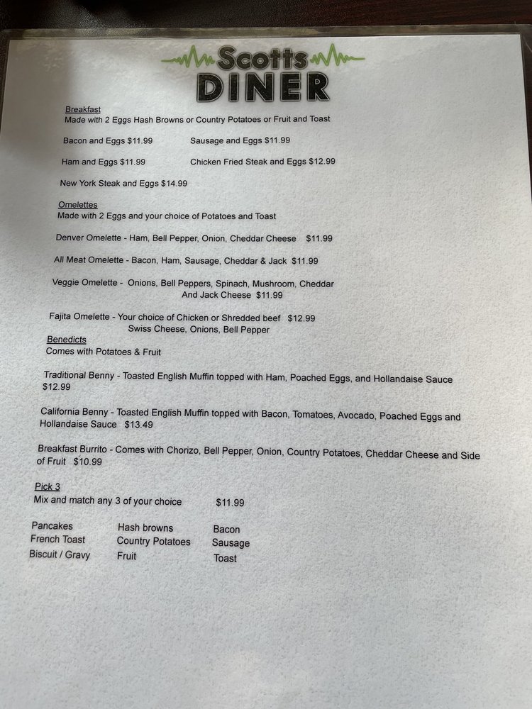 Introducing Scotts Diner, a gem in Merced County offering a delightful experience with its American diner cuisine. Known for its friendly service and fresh, delicious food, Scotts Diner is a must-visit spot. The menu features a variety of options including savory California burgers, veggie omelets, turkey clubs, eggs Benedict, and more. Customers rave about the quality of ingredients, generous portions, and tasty sides like garlic fries and hash browns. The atmosphere is casual and inviting, perfect for families and groups. Don't miss out on their standout dishes like the Diner burger with garlic fries and the steak salad. Scotts Diner is a hidden treasure for those seeking a memorable dining experience in Merced, CA.
